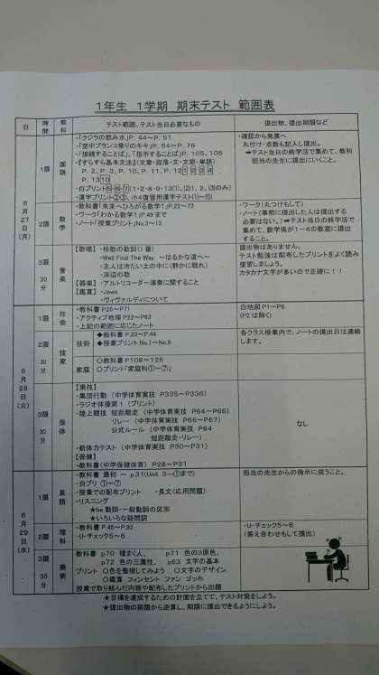 中間テストから各自課題が見つかったと思います。期末テストでその反省を活かしながら、納得のいく結果がでるように頑張ってください。