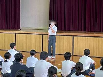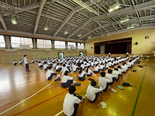 本日の学年集会は体育館で行いました。
