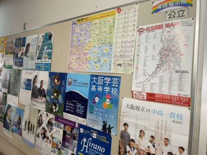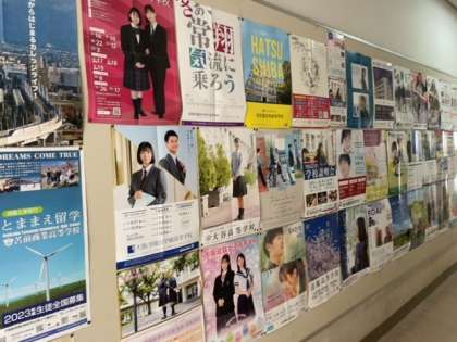 進学に向けて、各方面の学校のポスターが掲示されています。