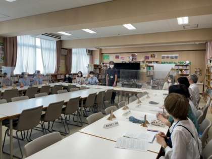 大阪市立中央図書館地域サービス担当者様、東住吉図書館長様、第4ブロックコーディネーター様、第4教育ブロック学校司書の皆様で学校図書館について報告と意見交換が行われました。