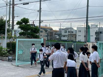 今日は、朝方は少し雨模様でしたが、登校する時間には青空が広がっています。