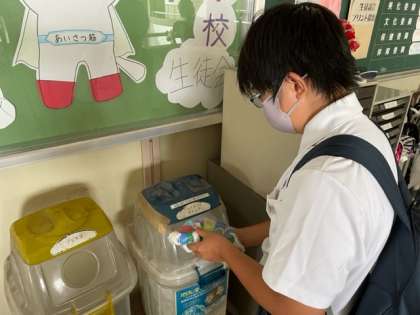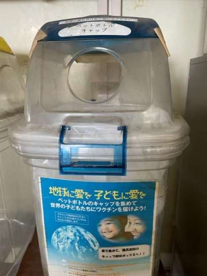 生徒会が中心になり、世界の子どもたちにワクチンを届けようとペットボトルのキャップを集めています。