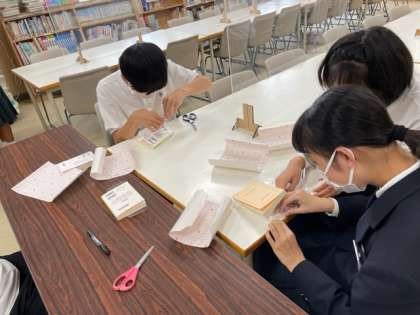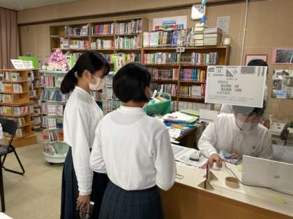 本の貸出しをしたり、新刊本にカバーを付けたり・・・。