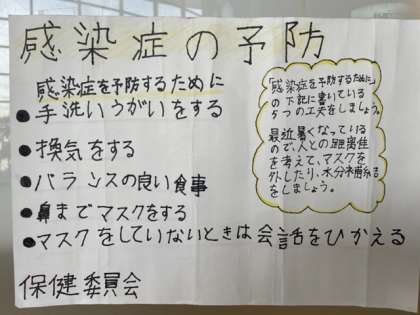 保健委員会では、健康に関する啓発ポスターを作成し、校内に掲示してくれています。
