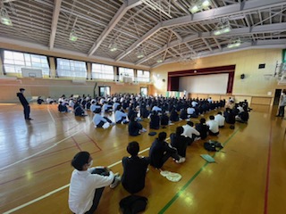 本日の学年集会は体育館で行いました。