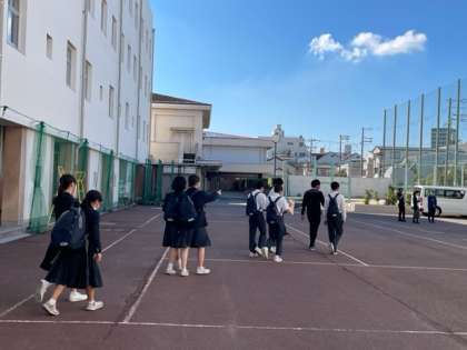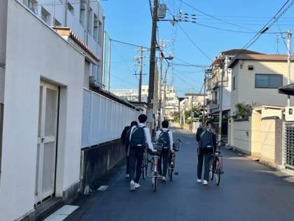 校区内は徒歩、校区外は自転車、電車で向かいました。
