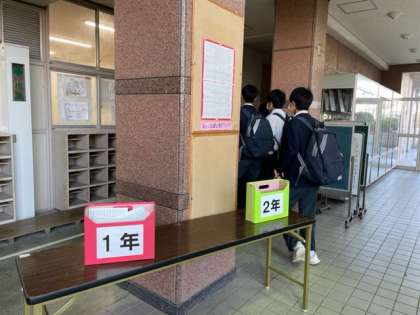 月曜の朝は、書き写しの提出箱を玄関に準備しています。