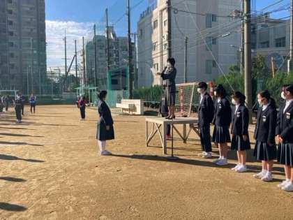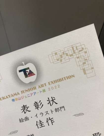 全校集会で美術部員がコンテストに入賞したので、表彰を行いました。