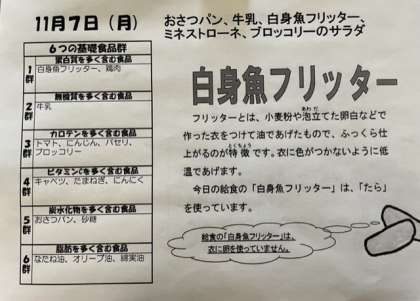 今日の給食 11月7日(月)