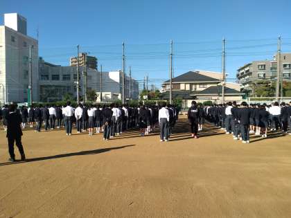 気持ちのよい秋晴れの中、全校集会が行われました。校長先生からは進路についてのお話がありました。今週、3年生は進路懇談を実施、2年生は職場体験活動に取り組みます。これからの人生について深く考える機会になりますので、皆さんにとって有意義な時間になるといいなと思っています。