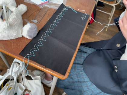 2年生の家庭科の授業では、スウェーデン刺繡に取り組んでいます。