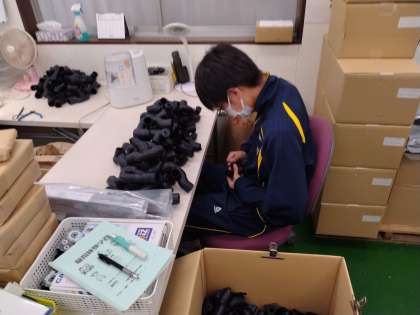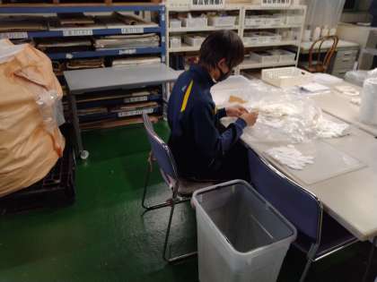 部署ごとに分かれて指導を受け、作業に集中しています。いろいろな作業をさせて頂けるようです。