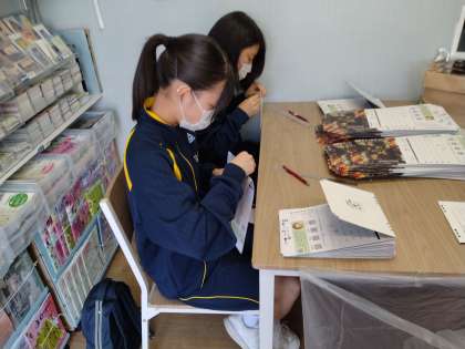 カレンダーを折りたたむ作業に取り組んでいます。このあと、オリジナルの作品をつくる時間もあるようです。