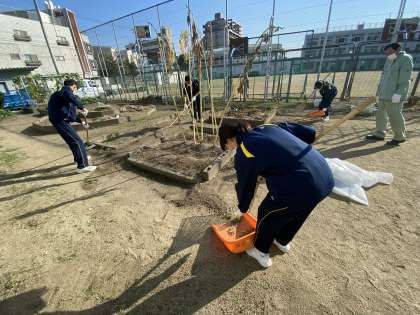 午後からは管理作業員さんの指導の元、畑掃除に精を出していました。