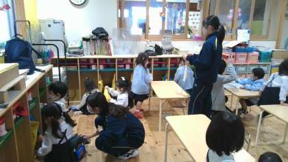小さな子ども達と同じ目線になり、工作のお手伝いを一生懸命していました。手を引っ張られて嬉しそうな表情をたくさん見ることができ、こちらも嬉しい気持ちになることができました。