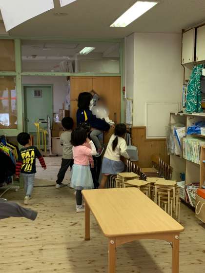 クラスのほとんどの園児が群がっていました。
