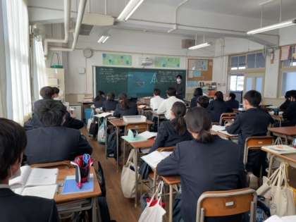 数学の授業の様子です。 証明問題に取り組んでいます。