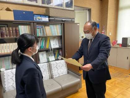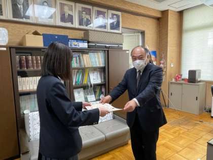 東住吉税務署長さんが来校され、入賞した3人に表彰していただきました。