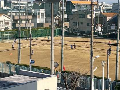 グラウンドでは、サッカー部が活動を行っています。
