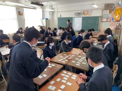 1年生の百人一首は、明日に延期になり、各クラス優勝目指して練習に取り組んでいます。