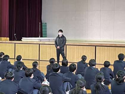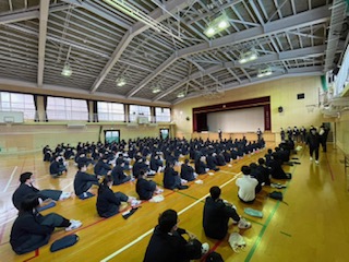 本日の学年集会は体育館で行いました。