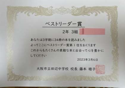 今年度の本校の貸出し冊数の平均は7冊になりました。