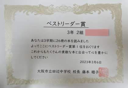 ベストリーダー賞を受賞されたみなさん、おめでとうございます。