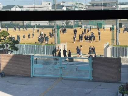 多くの人がグラウンドで思いっきり体を動かしていました。