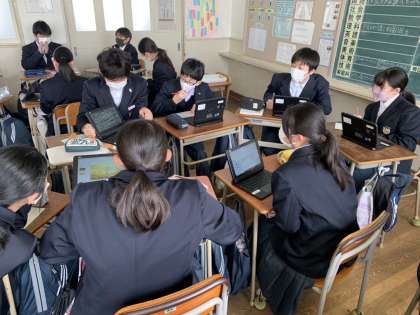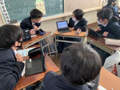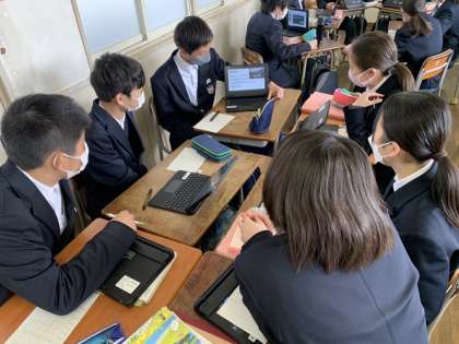小グループで発表し、それぞれに評価を行うことで、改善したり、内容をよりバージョンアップさせ、代表に選ばれた生徒がクラスで発表も行いました。