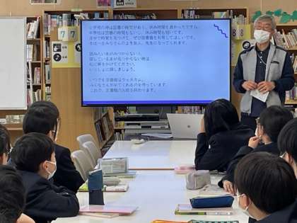 1年生の国語の時間を活用して、図書室の利用について、主幹司書の先生からガイダンスを受けました。