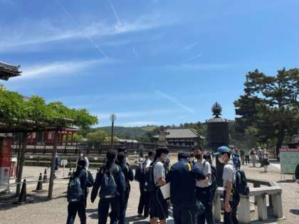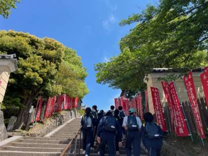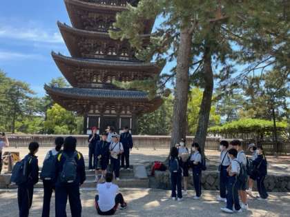 興福寺五重塔前でのチェックポイントで写真撮影。