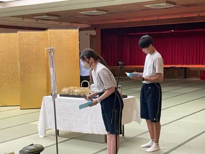 入館式で代表の人が挨拶をしました。
