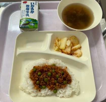 カレー味で、今日のように暑い日にはぴったりの献立でした。