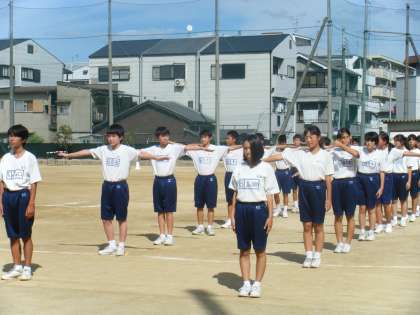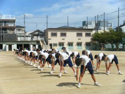 月曜日・火曜日とお天気に恵まれて、運動場で体育大会の練習をすることができました。しかし、今日もまた雨・・・。体育館での練習になりました。この写真は月曜日の練習の様子です☆