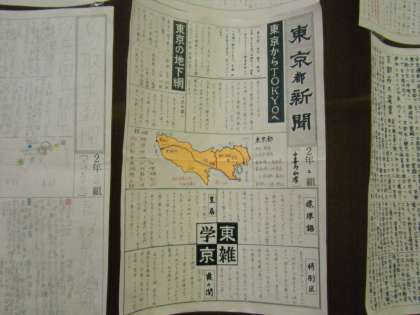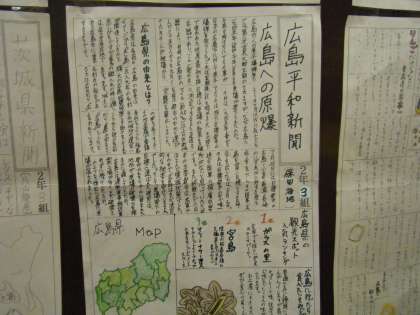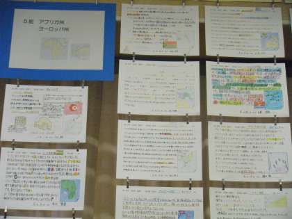 社会科の展示です。[1年生:世界旅行 ] [ 2年生:社会科新聞 ]