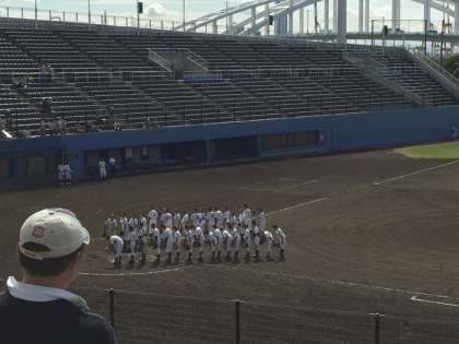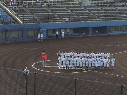 決勝に進みました。対戦相手は天王寺中学校。お父さん、お母さんたちの大きな声援を受け、見ごたえのある試合展開。「さよなら」で天王寺中学校を下し、『大阪市中学校 秋季総合体育大会 軟式野球の部 優勝!!』