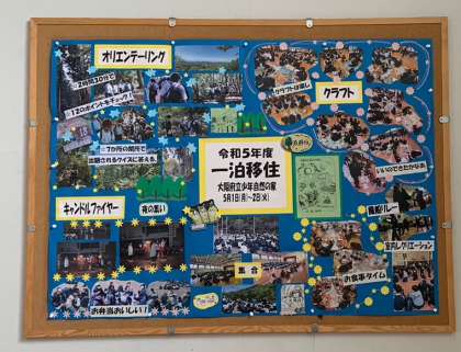 元気アップコーティネーターさんが、1年の一泊移住、3年の修学旅行の思い出を掲示物として作成してくださいました。
