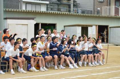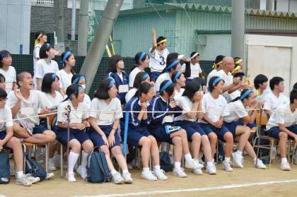 3年生の「大阪市統一テスト」が10月15日に実施されるため、今年の体育大会は例年より半月早く開催しました。2学期に入り、文化祭と体育大会と大きな学校行事があり、生徒たち、先生方は大変であったと思います。また、天候にも悩まされました。今年は始業式以後、梅雨を思わせるような雨続き・・・。練習もままならない状況でした。