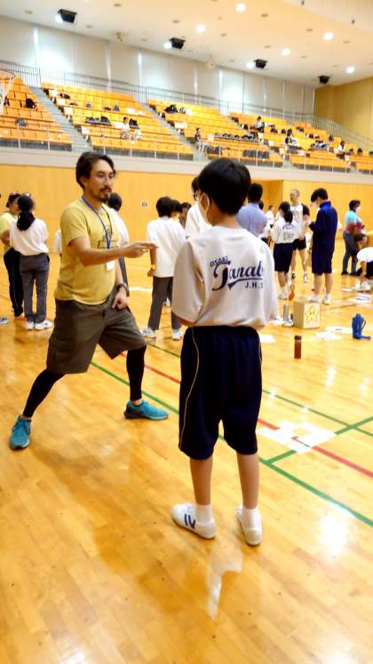 8月3日、浪速スポーツセンターで「ENGLISH DAY 2023」があり、本校からは3年生2名、1年生3名が参加しました。100人近くのC-NETの先生方や他校の生徒と一緒に、歌あり踊りありクイズあり、とさまざまな活動を楽しみました。もちろん、レイジェイ先生・クリス先生もいましたよ。