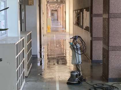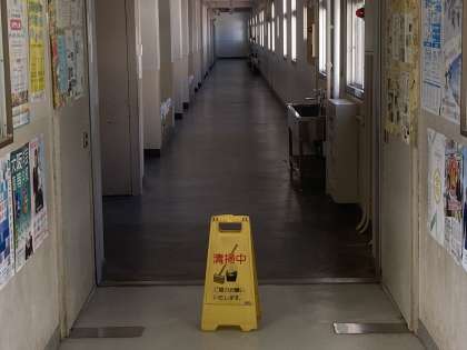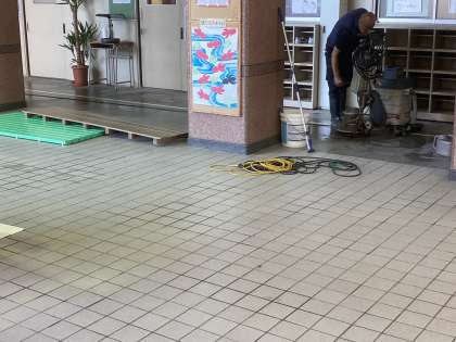 本日、業者の方に来ていただき、校舎玄関、教室前廊下を綺麗にしていただきました。