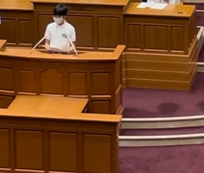 本校の3年生の生徒が第一委員会で質問者として登壇しました。