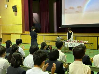 途中で先生たちがコップと水を使用してシュミレーションをおこない性感染症に対する正しい知識や予防策を知ることができました。