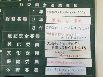 寒さが厳しくなってきました。体調に気を付けて、それぞれの目標を達成しましょう。