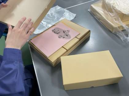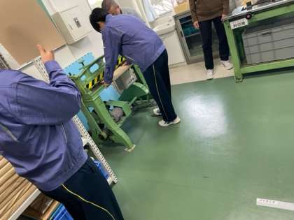 断裁機や平留め機等を使用し、各種の紙箱を制作する紙器加工の実習をしました。