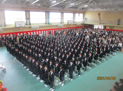 本日(4日)、入学式を挙行いたしました。新入生のみなさん、ご入学おめでとうございます。きりりと引き締まった表情、整然と入退場する姿…。とても凛々しく感じました。新入生代表の「喜びのことば」の中に「自分の目標を持ち、充実した3年間を送りたい」とありました。これから田辺中学校で過ごす3年間が、78期生のみなさんにとって実りあるものになることを心より願っています。