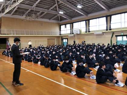 2時間目、2年生の学年集会では