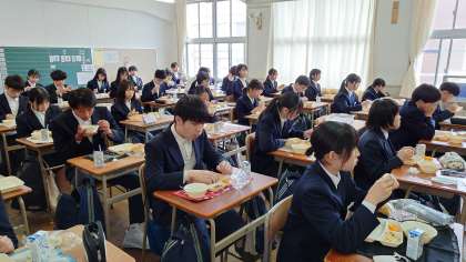 この日は今年度初めての給食で、好きなおかずをお代わりする姿も見られました。