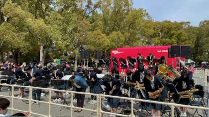 セレッソ大阪イベントでの演奏では、屋外での演奏となりこれまで体験した事のない経験をさせていただきました。