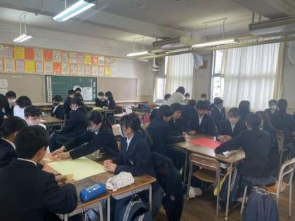 ?6時間目の総合では、学級目標を立てたり、しりとり侍というグループワークを行いました。グループでコミュニケーションを取りながら楽しそうに取り組んでいました。
