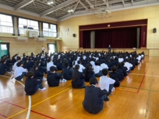 最初の学年集会です(1年生)